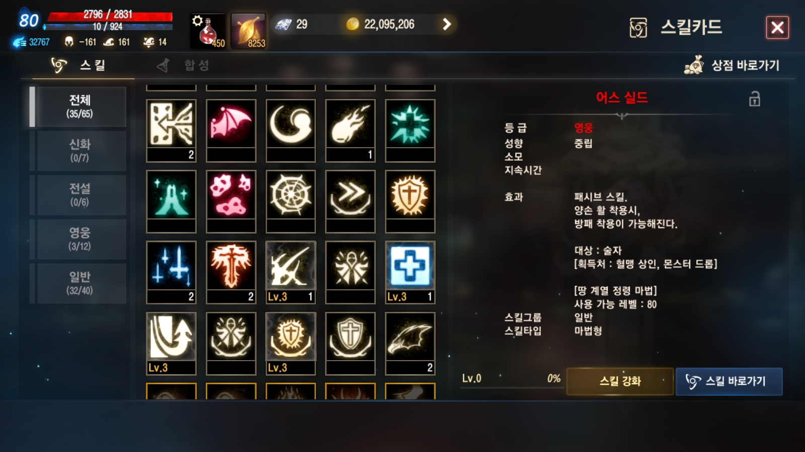 개 주작같았지만 어찌됐든 성공하여 영웅 스킬이 2개가 되었다.