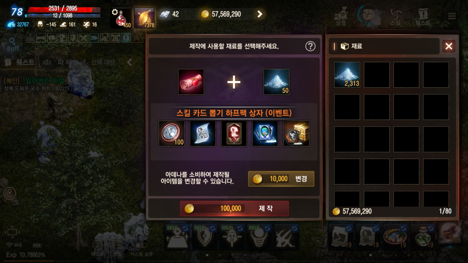 잠깐 접었다가 오니까 하프 엘릭서 제작하는 방법이 바뀌어가지고