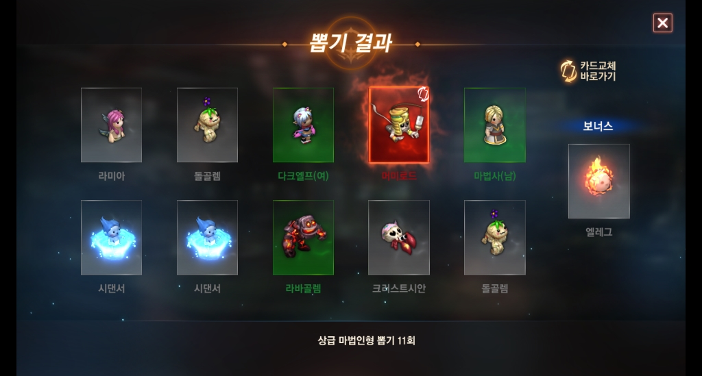 변코 같은 경우는 70만개 모아서 천상의 기사 만들 예정이고 명코는 200만개 모을 예정이다.