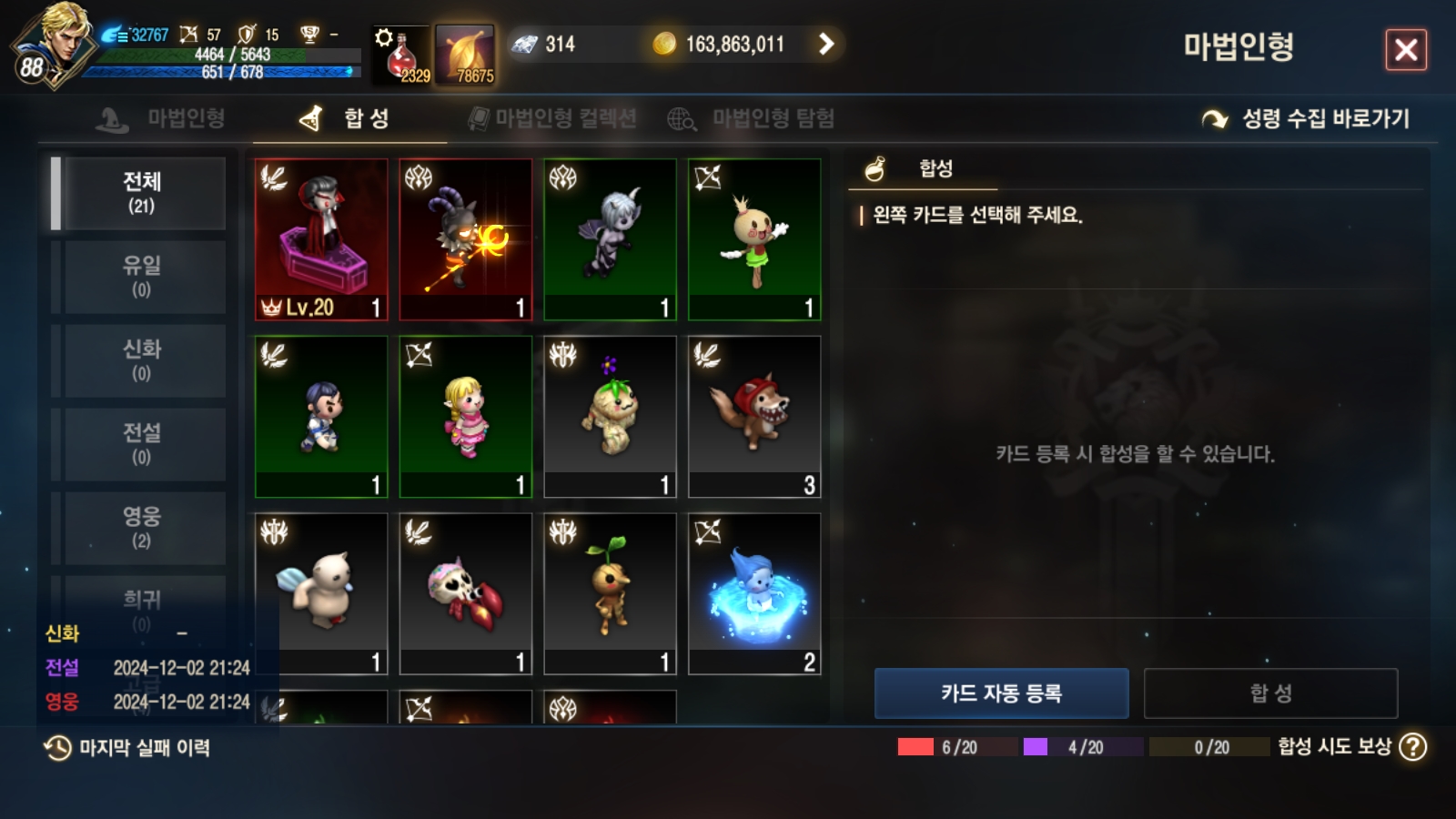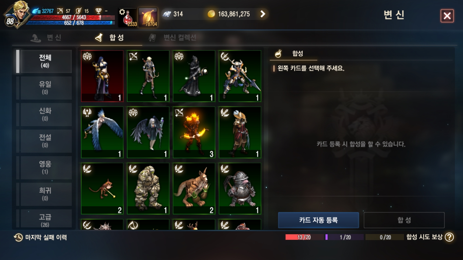 합성 탭에 진입하면 왼쪽 아래에 마지막 실패이력이 뜬다.