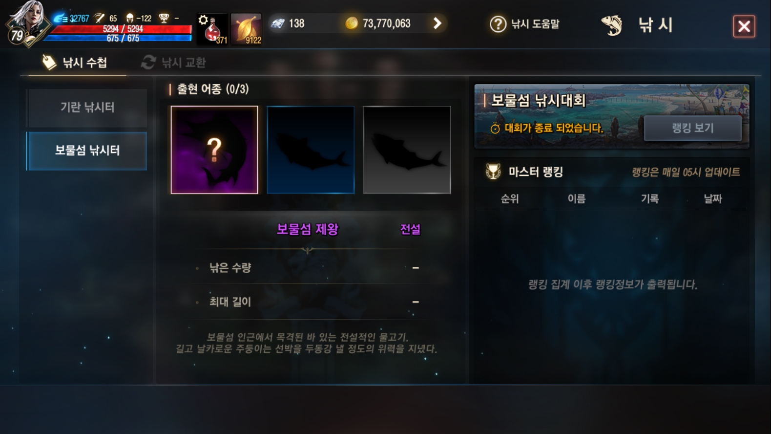 낚시 랭크에 들면 보물섬에서 낚시를 할 수 있고