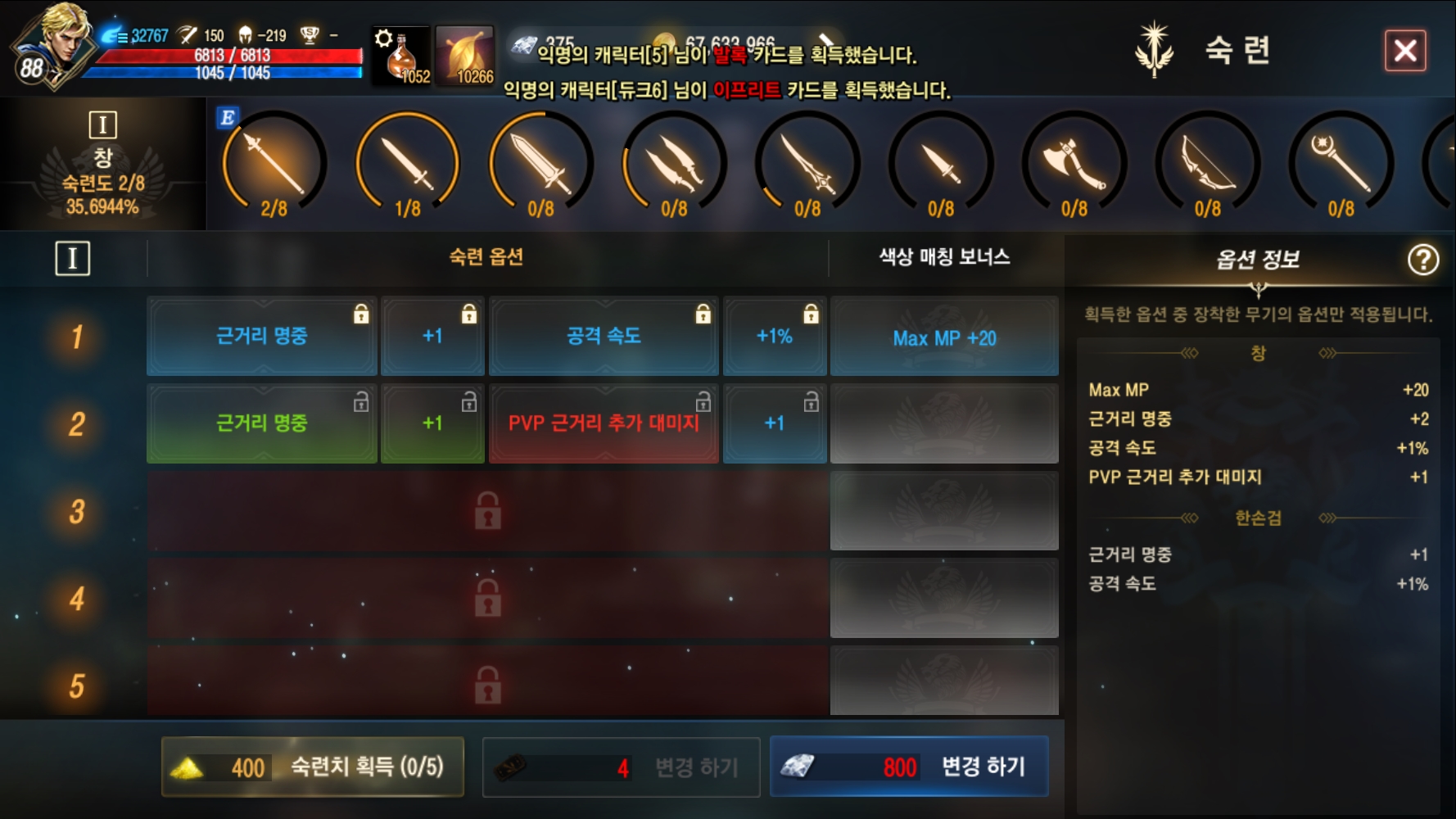 1) 무기 숙련도 레벨업