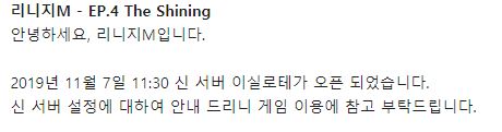 이실로테 서버가 무엇이냐? 바로 2019년에 오픈한 신서버다.